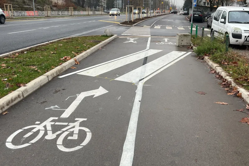 Skoraj sedem milijonov evrov je stala prenova Linhartove ceste v Ljubljani. Čeprav projekt še ni čisto dokončan, rešitve že zbujajo zaskrbljenost Ljubljančanov. Največ prahu dviguje nova kolesarska ulica, začetek oziroma konec katere je prikazan tudi na zgornji fotografiji. Izzivov za udeležence v prometu je več.