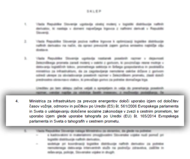 Evropska zakonodaja dopušča odstopanja od pravil, glede ur vožnje in počitkov voznikov, ko gre za izredne razmere, je pojasnil, in vlada bo prav zaradi varnosti zagotovila dodatne voznike iz vojske, ki imajo ustrezna znanja in certifikate za prevoz ADR blaga.
