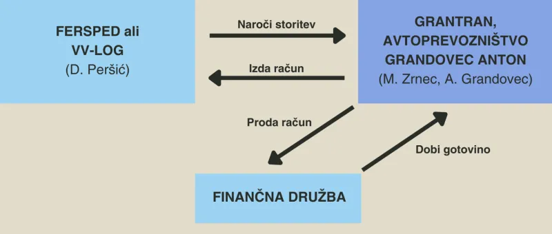 V odvisnih družbah Slovenskih železnic (SŽ) so torej podjetjem Antona Grandovca in njegove soproge priznavali fiktivne dolgove za storitve, ki naj jih ne bi opravil, on pa je te dolgove prodajal faktoring družbam, za kar je prejemal denar. Ko se je ugotovilo, da gre za fiktivne dolgove, so faktoring družbe ostale brez plačil. Nekatere med njimi svoj denar že zahtevajo v vloženih sodnih sporih.