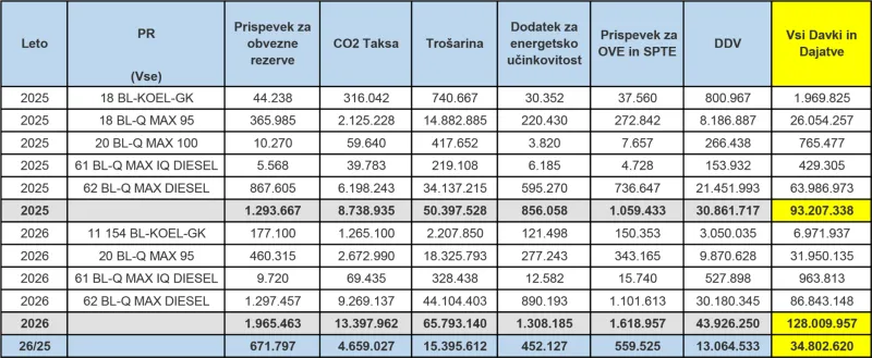 Finančna uprava bo uradne podatke o prodanih količinah in zbranih trošarinah in drugih dajatvah javnosti sporočila okoli 25. aprila.
