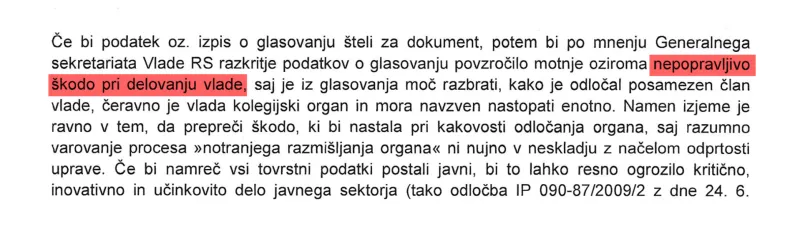 »Bi razkritje podatkov o glasovanju povzročilo motnje oziroma nepopravljivo škodo pri delovanju vlade.«